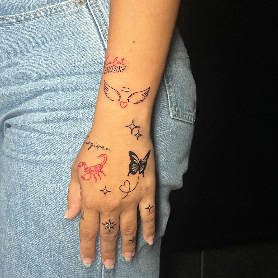 I specialise in creating detailed and delicate fine line tattoos, which are perfect for minimalist designs and intricate details. I also love to tell a story through ink with illustrative tattoos, where I can bring creative and unique ideas to life. For those who appreciate decorative art, I excel at crafting ornamental tattoos that feature intricate patterns and shapes designed to flow with the body.